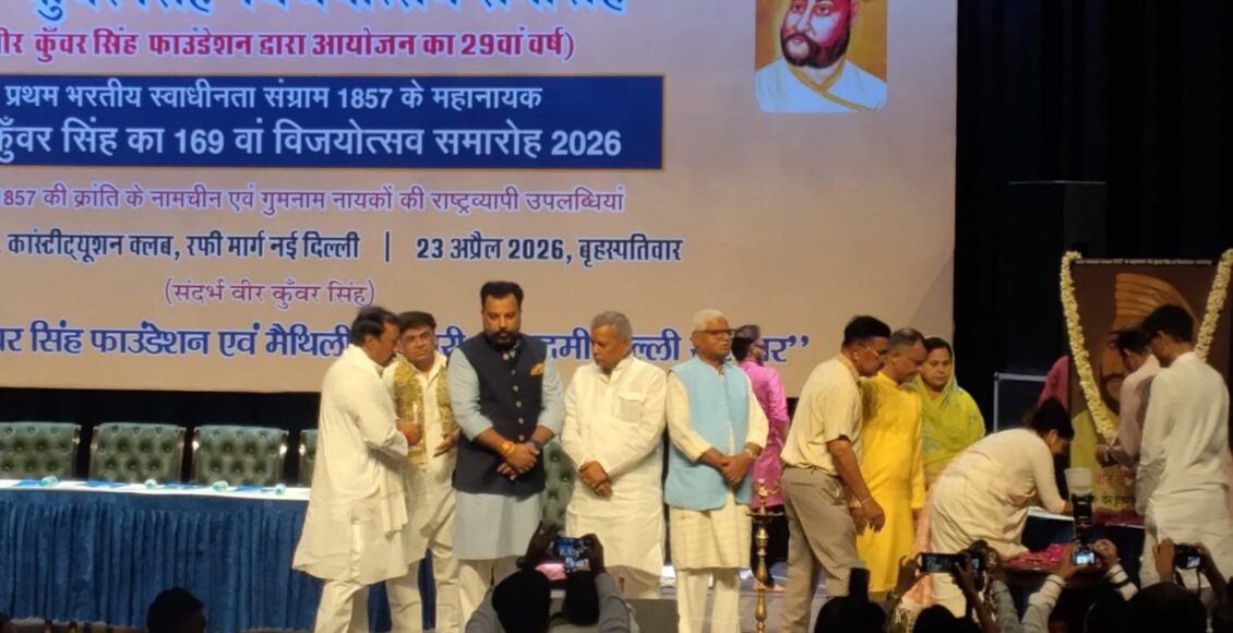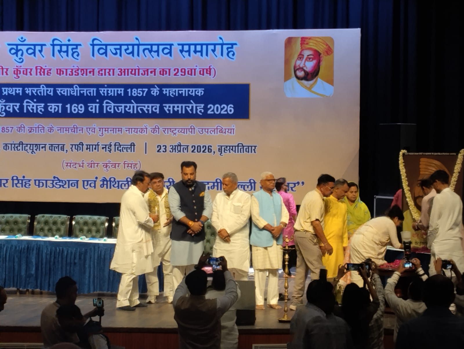 नई दिल्ली: 1857 के प्रथम स्वतंत्रता संग्राम के महानायक, बाबू वीर कुंवर सिंह के विजयोत्सव पर दिल्ली का मावलंकर हॉल राष्ट्रभक्ति के रंग में सराबोर नजर आया। वीर कुंवर सिंह फाउंडेशन द्वारा आयोजित इस समारोह में न केवल इतिहास को याद किया गया, बल्कि नई पीढ़ी को वीरता के आदर्शों से जोड़ने का संकल्प भी लिया गया।