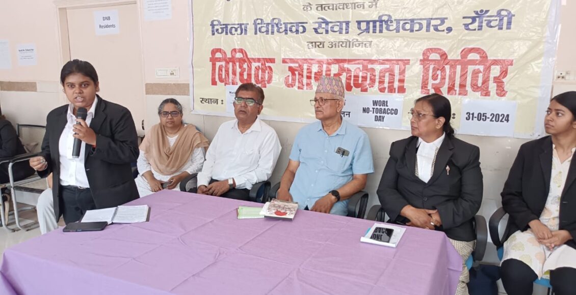 रांची : माननीय झारखण्ड उच्च न्यायालय के न्यायाधीश-सह-कार्यपालक अध्यक्ष, झालसा माननीय श्री सुजीत नारायण प्रसाद के दिशा-निर्देश तथा माननीय न्यायायुक्त-सह-अध्यक्ष डालसा, रांची, श्री दिवाकर पांडे के मार्गदर्शन में आज दिनांक 31.05.2024 को सचिव जिला विधिक सेवा प्राधिकार, रांची के द्वारा डालसा की एक टीम गठित कर रिनपास, कांके में विश्व तम्बाकू निषेध दिवस पर जागरूकता कार्यक्रम का आयोजन किया गया।