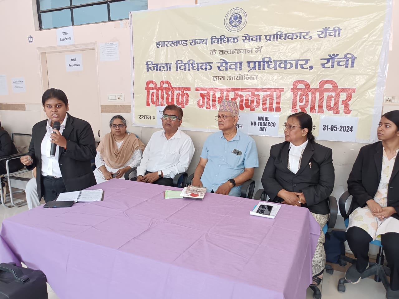 डालसा, रांची के पैनल अधिवक्ता, कविता खाती ने कहा कि विश्व तंबाकू निषेध दिवस प्रत्येक वर्ष 31 मई को विश्व स्तर में मनाया जाता है। इस दिवस का उद्देश्य धूम्रपान के सेवन से होने वाली हानियों और ख़तरों से विश्व जनमत को अवगत कराके इसके उत्पाद एवं सेवन न करने की दिशा में विश्व को आगे बढ़ाना है।