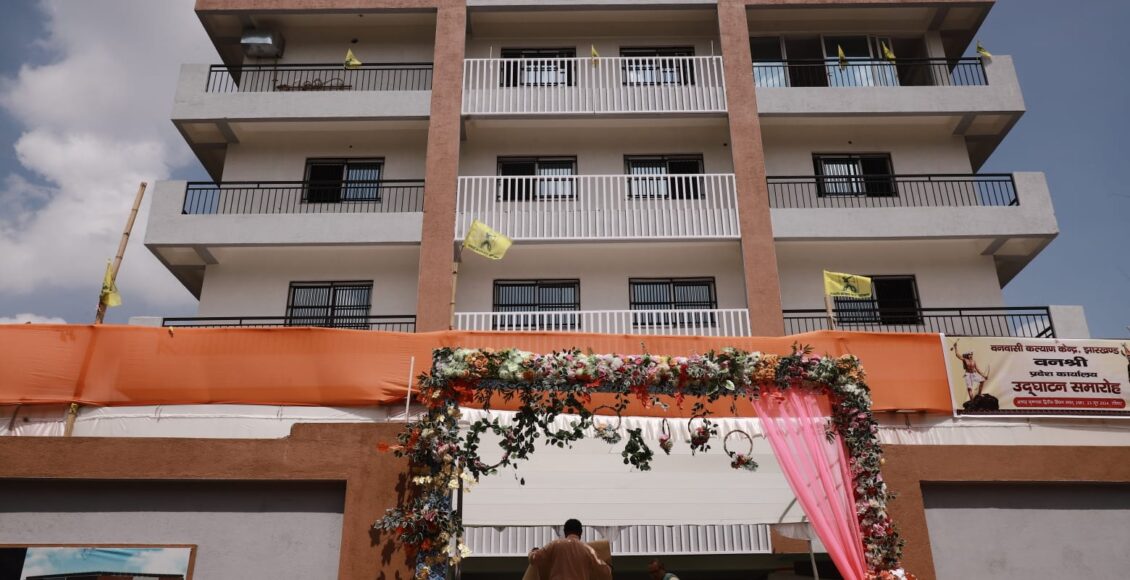 धन्यवाद ज्ञापन देते हुए राँची महानगर अध्यक्ष सज्जन सर्राफ ने भवन के शिलान्यास को याद करते हुए कहा कि इस नवनिर्मित भवन का शिलान्यास जूना पीठाधीश्वर के पूज्य स्वामी अवधेशानन्द गिरी जी महाराज द्वारा रखा गया था. शिलान्यास के समय पूज्य स्वामी अवधेशानन्द गिरी महाराज ने कहा था कि धार्मिक पूजा-पाठ आदि कार्यों जैसे वनवासी बन्धुओं की निःस्वार्थ सेवा भी समान पूण्य कार्य है. मुझे इस भवन का शिलान्यास करने का अवसर मिला, उसे अपना सौभाग्य मानता हूँ. समाज के सबके सहयोग से यह निर्माण कार्य शीघ्र पूर्ण हो ऐसी मेरी इच्छा है” उनके दिये गये आशीर्वचन से निर्मित भवन का उद्घाटन आज चिन्मय मिशन आश्रम, राँची के पूज्य स्वामी परिपूर्णानंद सरस्वती के कर कमलो द्वारा हुआ. यह हमारे लिए सौभाग्य की बात है