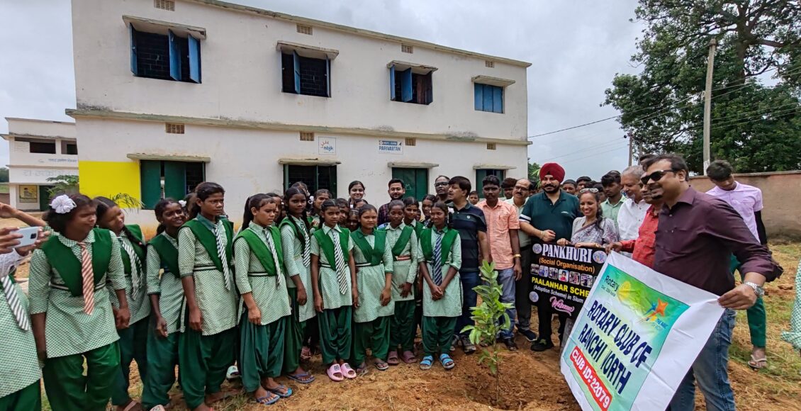 Around 110 saplings of Ashoka, guava, mango and jackfruit were planted on the barren land of the school with the help of students and members of Pankhuri and Rotary Club of Ranchi North.