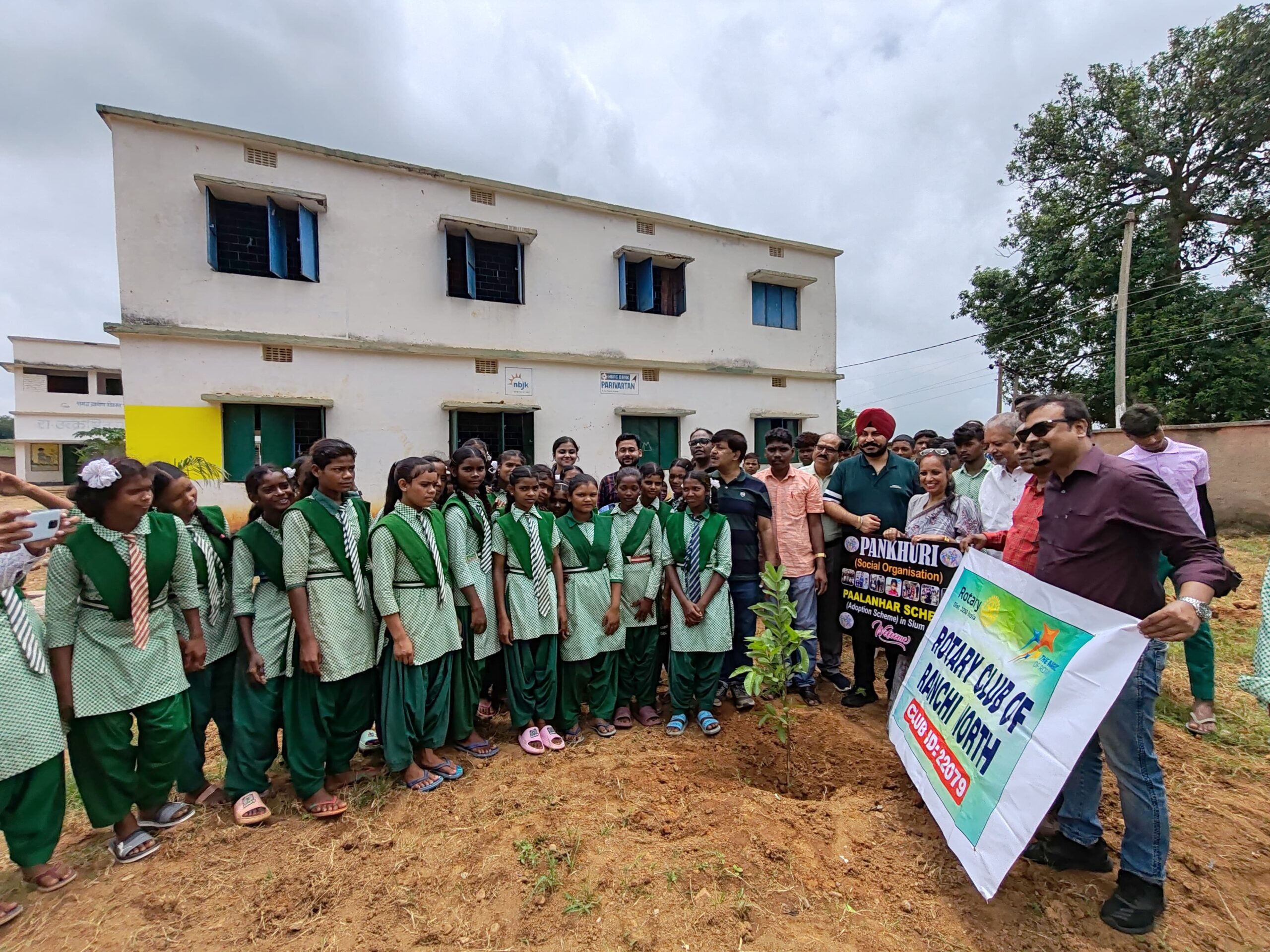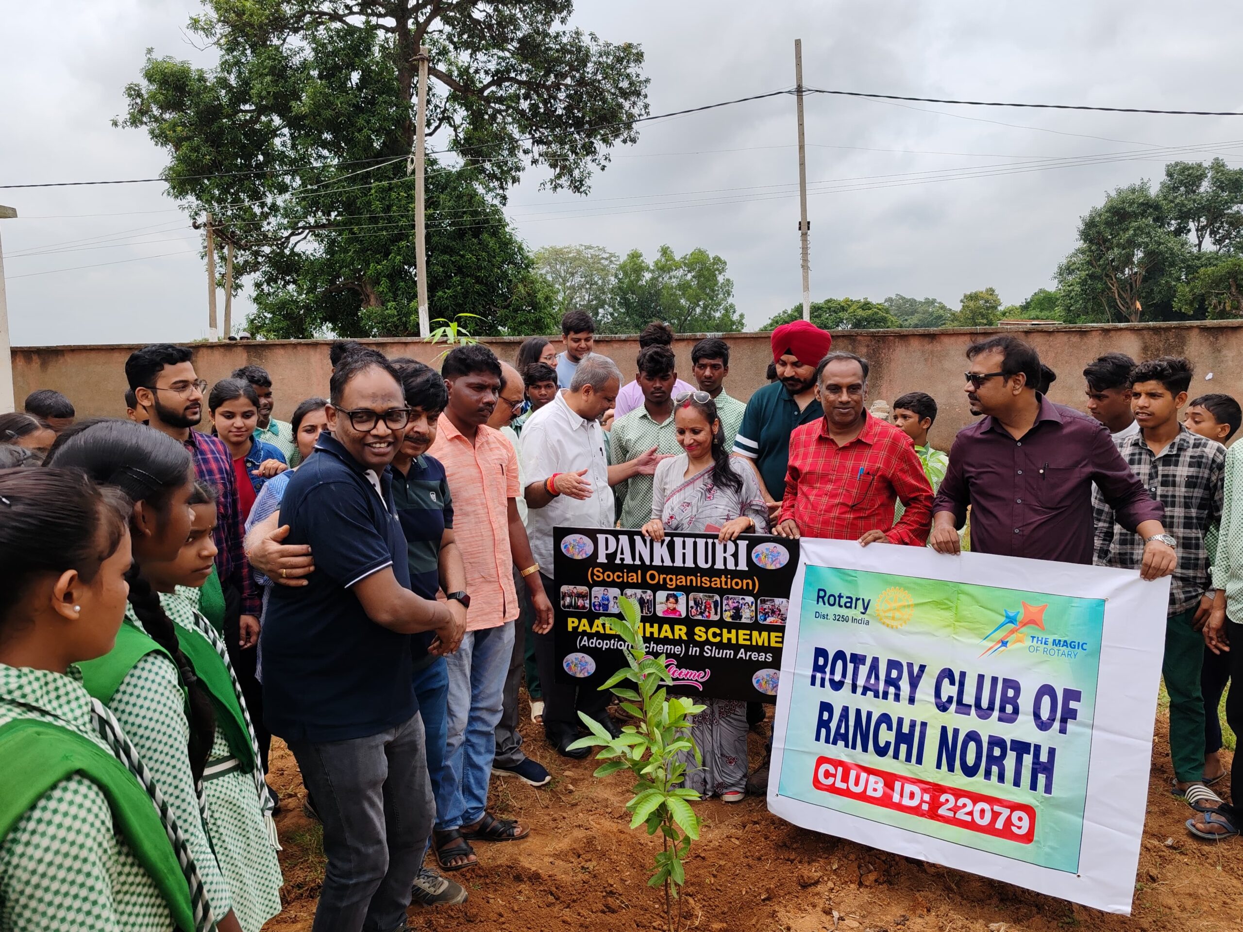 Around 110 saplings of Ashoka, guava, mango and jackfruit were planted on the barren land of the school with the help of students and members of Pankhuri and Rotary Club of Ranchi North.