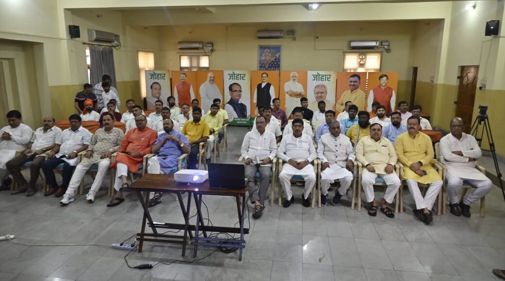 प्रदेश अध्यक्ष एवम पूर्व मुख्यमंत्री बाबूलाल मरांडी,प्रदेश संगठन महामंत्री कर्मवीर सिंह के साथ प्रदेश कार्यालय में महामंत्री एवम सांसद आदित्य साहू,मनोज सिंह ,प्रदेश उपाध्यक्ष बालमुकुंद सहाय,विकास प्रीतम, विधायक विरांची नारायण,नारायण दास ने कार्यकर्ताओं के कार्यक्रम को सुना।