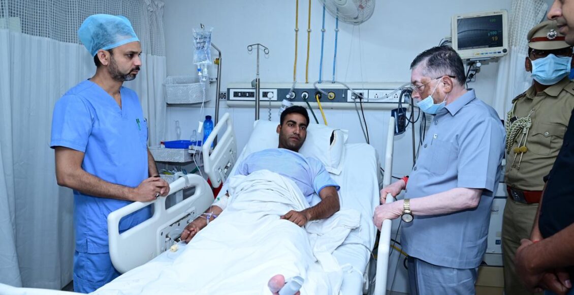 Ranchi: राज्यपाल संतोष कुमार गंगवार ने पश्चिमी सिंहभूम जिलान्तर्गत छोटानागरा थाना क्षेत्र के बालिबा में उग्रवादियों द्वारा द्वारा आईईडी ब्लास्ट में घायल हुए सीआरपीएफ कोबरा जवान जितेन्द्र दानी के स्वास्थ्य की जानकारी लेने हेतु राज अस्पताल, रांची पहुंचे। उन्होंने वहाँ चिकित्सकों से उनके स्वास्थ्य संबंधित जानकारी प्राप्त की तथा उनके शीघ्र स्वस्थ होने की कामना की।