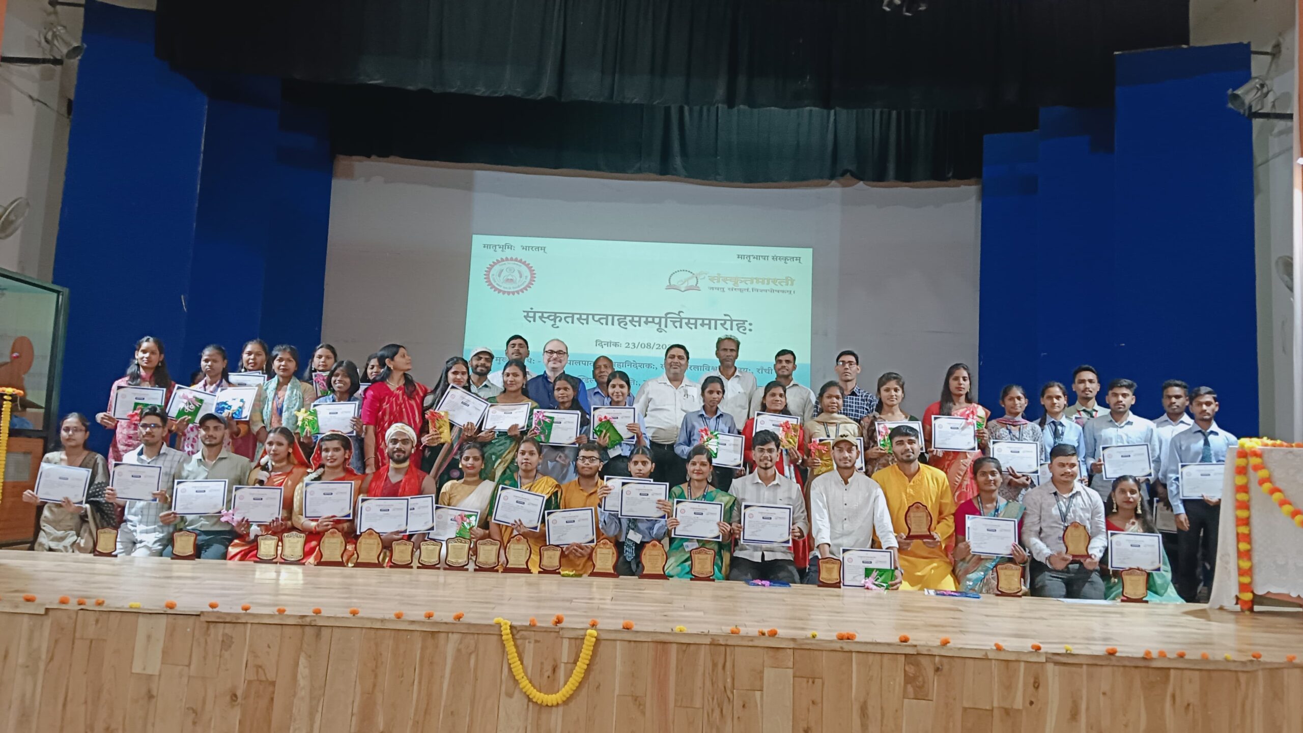 The ceremony witnessed the felicitation of winners from the various competitions held throughout the week. The event commenced with a Vedic invocation. Dr. Shreemitra, a distinguished faculty member, delivered the welcome address, followed by a melodious welcome song rendered by Manisha Bodra. Solo performances were given by Sarvottama Kumari and Tanu Kumari, while a group dance was performed by Sarjana Rathore and her ensemble. The proceedings were deftly managed by Dr. Shailesh Kumar Mishra, and the vote of thanks was graciously delivered by Dr. Jagdamba Prasad.