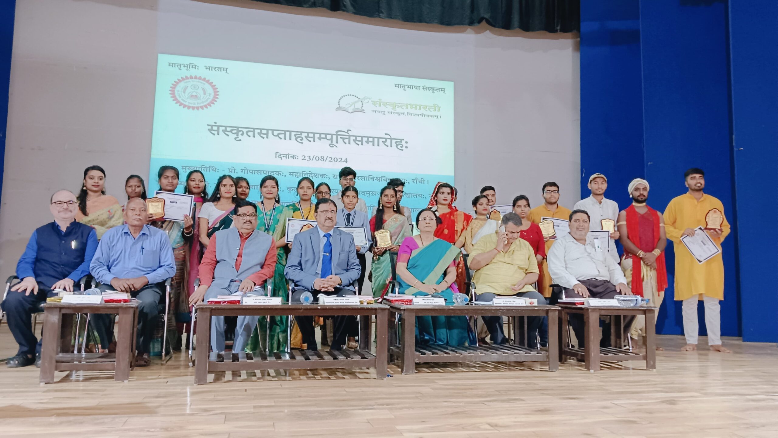 The ceremony witnessed the felicitation of winners from the various competitions held throughout the week. The event commenced with a Vedic invocation. Dr. Shreemitra, a distinguished faculty member, delivered the welcome address, followed by a melodious welcome song rendered by Manisha Bodra. Solo performances were given by Sarvottama Kumari and Tanu Kumari, while a group dance was performed by Sarjana Rathore and her ensemble. The proceedings were deftly managed by Dr. Shailesh Kumar Mishra, and the vote of thanks was graciously delivered by Dr. Jagdamba Prasad.