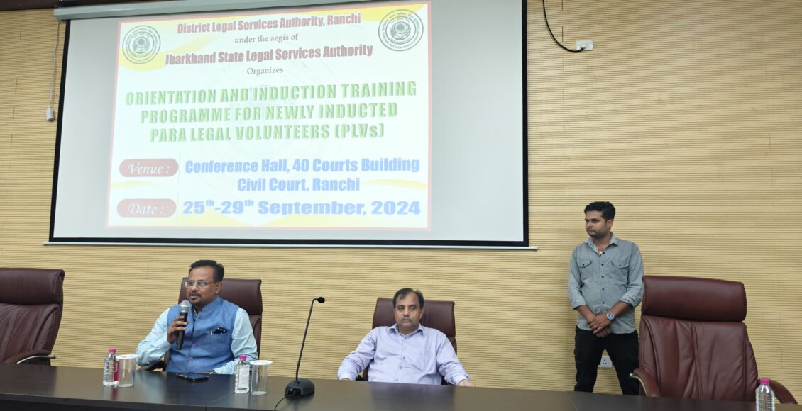 रांची : माननीय झालसा के निर्देश पर माननीय न्यायायुक्त-सह-अध्यक्ष के मार्गदर्शन में जिला विधिक सेवा प्राधिकार रांची के अंतर्गत 40 कोर्ट बिल्डिंग व्यवहार न्यायालय, रांची के सभागार में नव चयनित पारा लीगल वॉलिन्टियर को आज अंतिम दिन पांच दिवसीय ऑरिएंटेशन एवं इंडक्सन ट्रेनिंग प्रोग्राम के अंतर्गत प्रशिक्षण दिया गया। इसके साथ ही प्रशिक्षण कार्यक्रम का समापन हो गया।