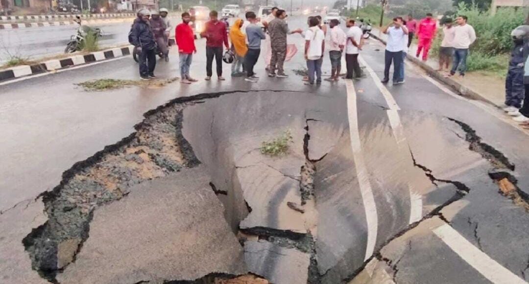 Ranchi: झारखंड की पहली 8 लेन सड़क उद्घाटन के 21 दिनों के बाद ही धंस गई। यह सड़क 461.90 करोड़ की लागत से बनी थी। इसका उद्घाटन मुख्यमंत्री हेमंत सोरेन ने 4 अक्टूबर को ऑनलाइन किया था। शुक्रवार शाम करीब 4 बजे झारखंड मोड़ से तेतुलमारी की ओर जाने वाले धारजोड़ी बस्ती के पास सर्विस लेन की सड़क धंस गई। यहां पर 8-10 मीटर चौड़ा और 8 मीटर गहरा गड्ढा बन गया है। घटना के बाद ना तो यहां कोई बैरिकेडिंग की गई है और ना ही सुरक्षा के लिए कोई व्यवस्था की गई है।