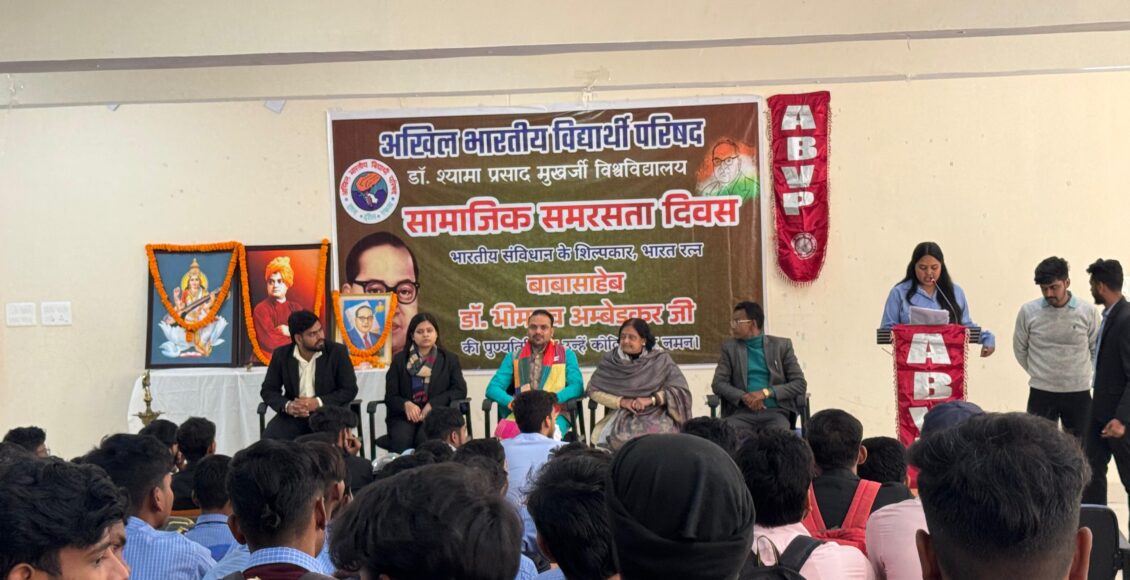 Ranchi: अखिल भारतीय विद्यार्थी परिषद (एबीवीपी) रांची महानगर के डॉक्टर श्यामा प्रसाद मुखर्जी विश्वविद्यालय इकाई द्वारा बाबा साहेब डॉक्टर भीमराव अंबेडकर की पुण्यतिथि को सामाजिक समरसता दिवस के रूप में मनाते हुए इस अवसर पर संगोष्ठी का आयोजन किया गया। इस अवसर पर उपस्थित क्षेत्रीय संगठन मंत्री श्री याज्ञवल्क्य शुक्ल जी ने छात्र शक्ति को संबोधित करते हुए कहा कि सामाजिक समरसता से ही एक सशक्त और प्रगतिशील समाज का निर्माण संभव है। जाति, धर्म और वर्ग के भेदभाव को समाप्त कर हम एक मजबूत राष्ट्र की नींव रख सकते हैं।”भारत रत्न बाबासाहेब आम्बेडकर जी ने भारत को एक ऐसा प्रगतिशील व सर्वसमावेशी संविधान दिया जिसने पूरे देश को एकता के सूत्र में बांधने के साथ-साथ देश के हर नागरिक को अपना जीवन संवार कर देश के विकास में भागीदार बनने की प्रेरणा दी।”