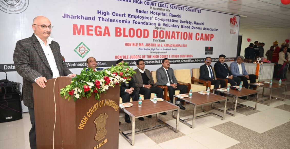The blood donation camp was jointly organized by Sadar Hospital, Ranchi, High Court Legal Services Committee, High Court Co-operative Society, Jharkhand Thalassemia Foundation, Voluntary Blood Donor Association. Justice Rangon Mukhopadhyay was the main motivator in this event and his efforts for the blood donation camp have always been commendable.