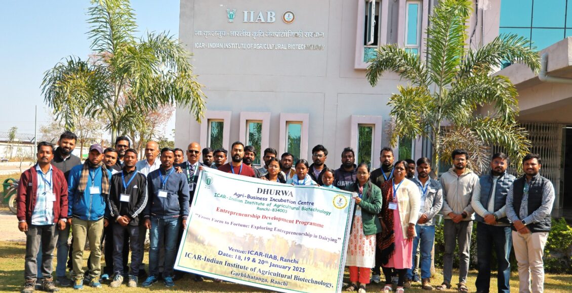 Ranchi: The Agri-Business Incubation Unit of ICAR-Indian Institute of Agricultural Biotechnology (IIAB) organized an Entrepreneurship Development Programme (EDP) on Dairy Farming, titled “Farm to Fortune: Exploring Entrepreneurship in Dairying”, from January 18 to January 20, 2025 at its Garkhatanga campus.