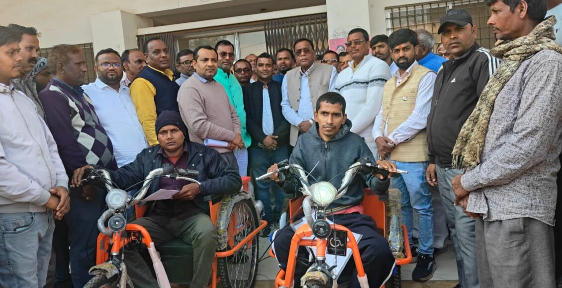 Giridih: Bagodar MLA Nagendra Mahto distributed artificial equipment, including battery-operated tricycles, tricycles, and wheelchairs, to differently abled individuals.