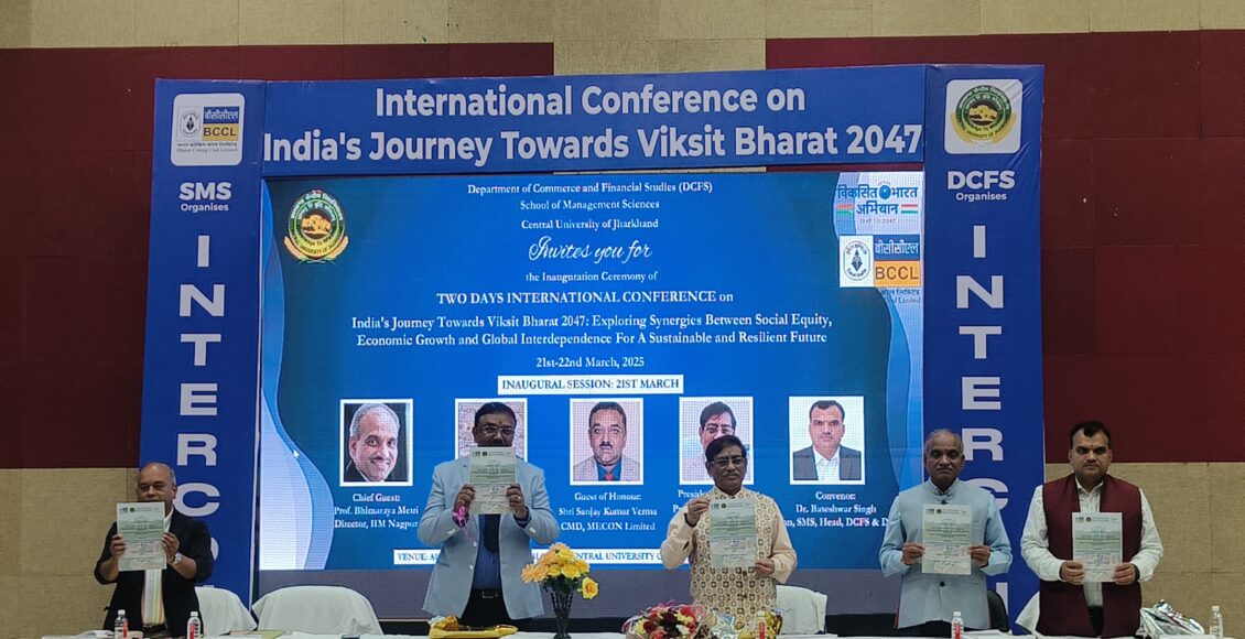 “विकसित भारत 2047 की ओर भारत की यात्रा: एक टिकाऊ और लचीले भविष्य के लिए सामाजिक समानता, आर्थिक विकास और वैश्विक अंतर्निर्भरता के बीच तालमेल की खोज” विषय पर आयोजित दो दिवसीय अंतरराष्ट्रीय सम्मेलन का भव्य समापन केंद्रीय विश्वविद्यालय झारखंड (CUJ) के ऑडिटोरियम में हुआ।