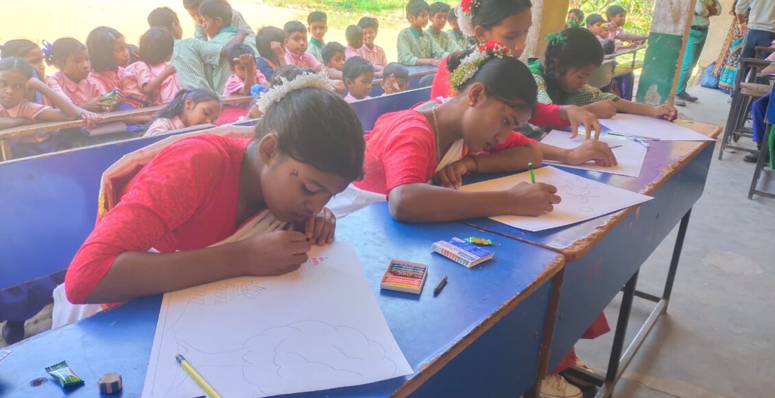 Ranchi: It was a visual treat for both contemporary artists with their paint brush depicting their artistic skills on canvas in front of underprivileged students at Govt middle school at Karamtoli Bariatu today.