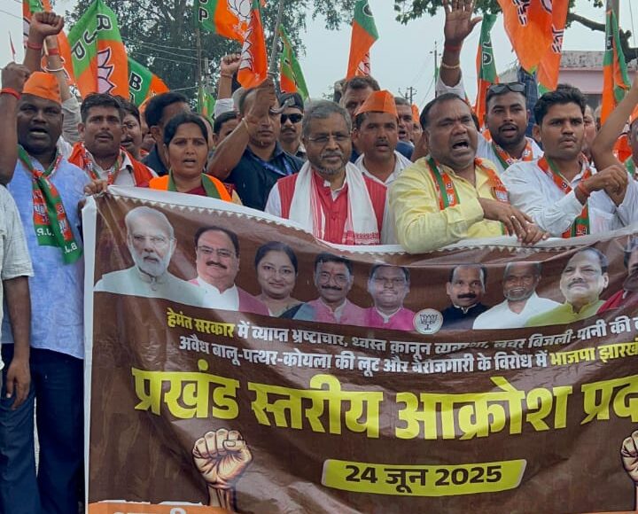 Ranchi: हेमंत सरकार पार्ट 2 को 6 महीने की मोहलत के बाद आज प्रदेश भाजपा ने सड़कों पर उतर कर राज्य के सभी 264 प्रखंड /अंचल कार्यालयों में आक्रोश प्रदर्शन किया और हेमंत सरकार को कड़ी चेतावनी दी।