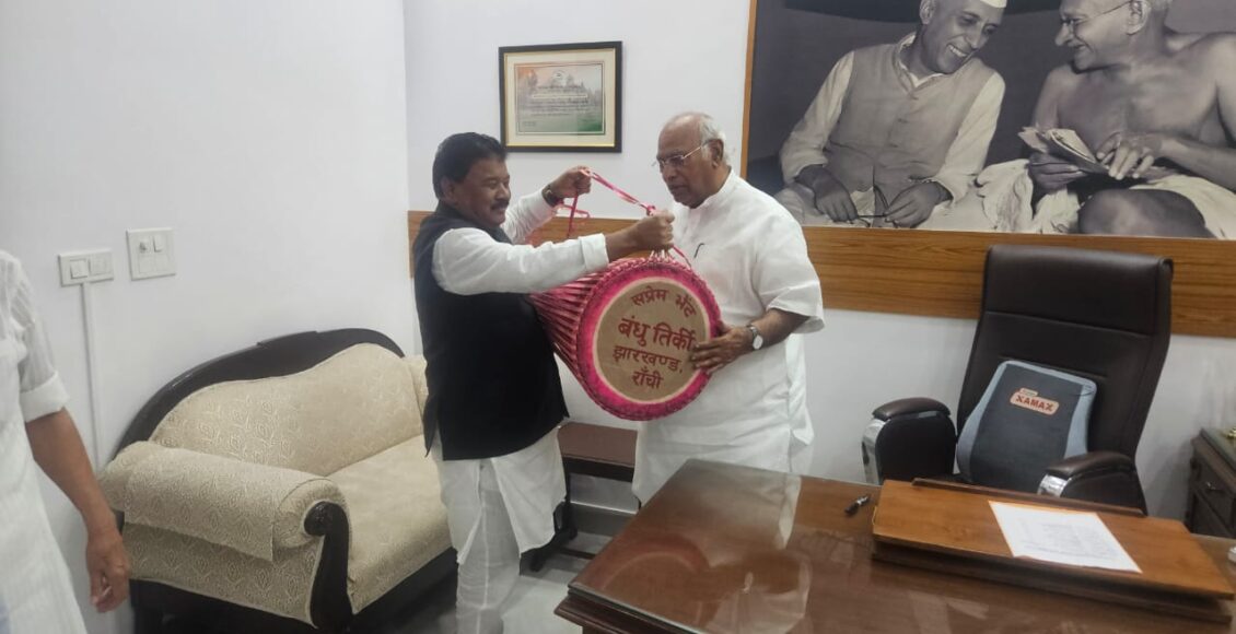 Ranchi: झारखंड कांग्रेस के कार्यकारी अध्यक्ष सह झारखंड सरकार राज्य समन्वय समिति के सदस्य बंधु तिर्की ने दिल्ली में कांग्रेस अध्यक्ष मल्लिकार्जुन खड़गे से मुलाकात की है . इस मुलाकात में सरना धर्म कोड को लेकर व्यापक आंदोलन और भविष्य को लेकर रणनीति तैयार करने पर चर्चा हुई है . पूर्व मंत्री बंधु तिर्की ने बताया कि जातिगत जनगणना 2025 में सरना धर्म कोड को शामिल करना सबसे ज्वलंत एवं गंभीर मुद्दा है और इसके बिना जनगणना बेमानी है.