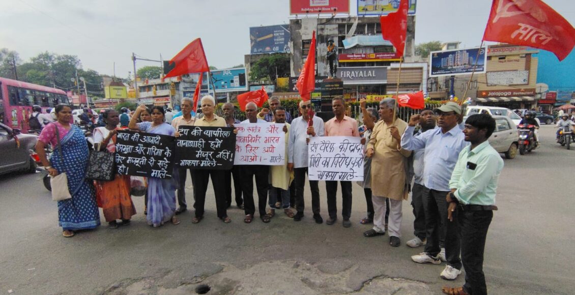 अमेरिकी राष्ट्रपति डोनाल्ड ट्रंप के द्वारा भारत लगाए गए 25% टैरिफ और मोदी सरकार की विदेश नीति के खिलाफ भाकपा माले का विरोध प्रदर्शन