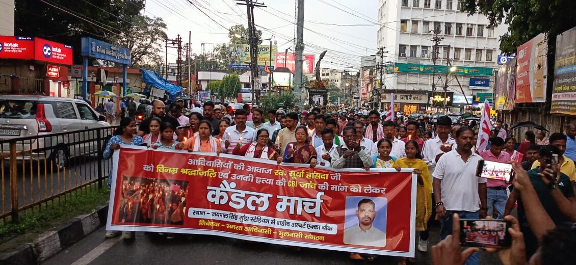 कैंडल मार्च के दौरान विभिन्न आदिवासी संगठनों ने सूर्या हांसदा जी के न्याय के लिए राज्य सरकार से सीबीआई जांच की मांग की।