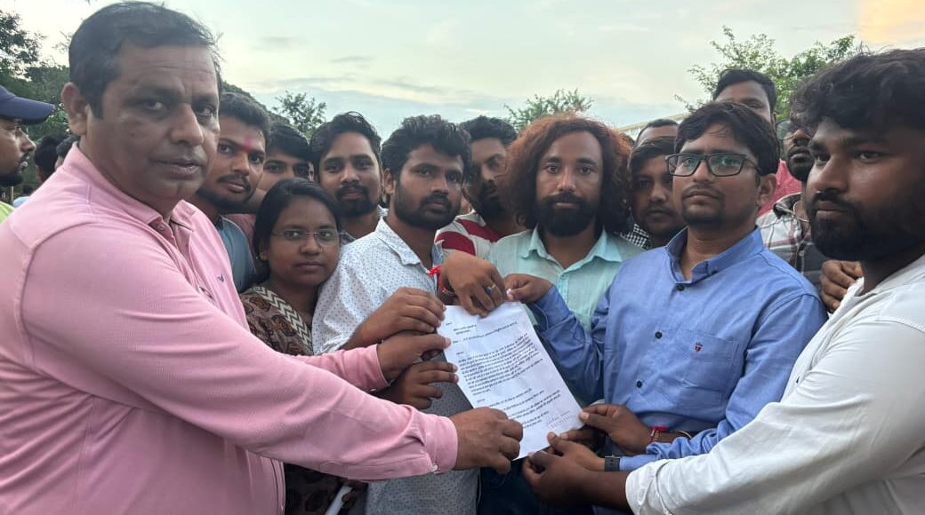 पदयात्रा करते हुए सदन के बाहर छात्रों ने किया धरना-प्रदर्शन