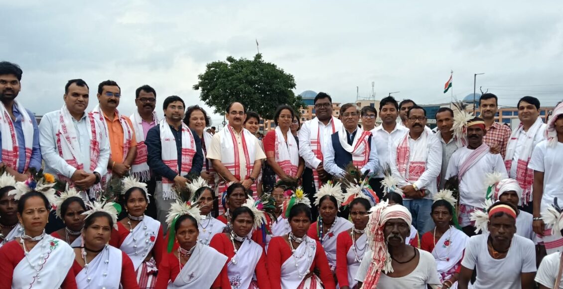 Ranchi: झारखंड केंद्रीय विश्वविद्यालय के ट्राइबल स्टूडेंट्स कल्चरल एसोसिएशन – टीएससीए (Tribal Students’ Cultural Association, TSCA) के तत्वावधान में विश्वविद्यालय परिसर में करम पूर्व संध्या का भव्य आयोजन किया गया। इस अवसर पर कुलपति, प्रो. क्षिति भूषण दास मुख्य अतिथि के रूप में उपस्थित रहे। कुलपति ने कार्यक्रम की शुरुआत पारंपरिक पाहन पूजा से की। पाहन ने भेलवा पूजा और झंडा रोपण करके सभी के उपस्थिति में पूजा संपन्न कराई। पूजा उपरान्त सारे मेहमानों का स्वागत गमछा पहना के किया गया। कुलपति को ऊरांव समाज के पारंपरिक तरीके से गमछा और पगड़ी पहना के स्वागत किया गया। डीन, स्टूडेंट वेलफेयर, डॉ अनुराग लिंडा ने गमछा और आदिवासी चित्र देकर कुलपति का स्वागत किया। कुलपति ने विद्यार्थियों और प्राध्यापकों के साथ आदिवासी पारंपरिक नृत्य किया और मांदर भी बजाया।