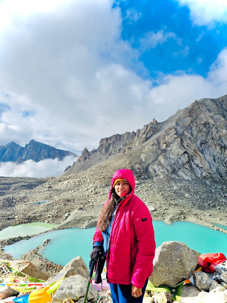 Covering an extensive 52-kilometre trek across inhospitable climatic conditions, treacherous terrain, and extreme altitudes, Ms. Chitrakshi displayed remarkable endurance and determination. The highlight of the journey was the crossing of the mighty Dolma La Pass, situated at a staggering 18,640 feet above sea level, a feat that tests the physical and mental strength of even the most seasoned adventurers. After crossing Dolma La, she also had the divine darshan of the sacred Gauri Kund, a holy lake associated with Goddess Parvati, considered a site of immense spiritual significance.