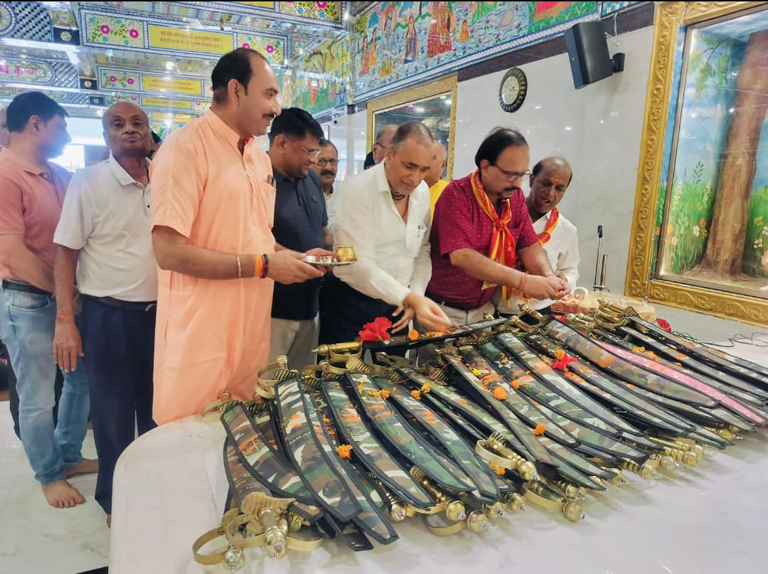 कार्यक्रम के विशिष्ट अतिथि शहर के सुप्रसिद्ध चिकित्सक डॉ. एच.पी. नारायण थे, जिन्होंने अपने उद्बोधन में धर्म, सेवा और आत्मबल की महत्ता पर प्रकाश डाला। इस शुभ अवसर पर नारी सशक्तिकरण की दिशा में एक महत्वपूर्ण पहल करते हुए 151 महिलाओं को आत्मरक्षा हेतु प्रतीकस्वरूप तलवारें वितरित की गईं। यह पहल समाज में नारी शक्ति को सशक्त बनाने की दिशा में एक प्रेरणादायक प्रयास के रूप में सराही गई।
