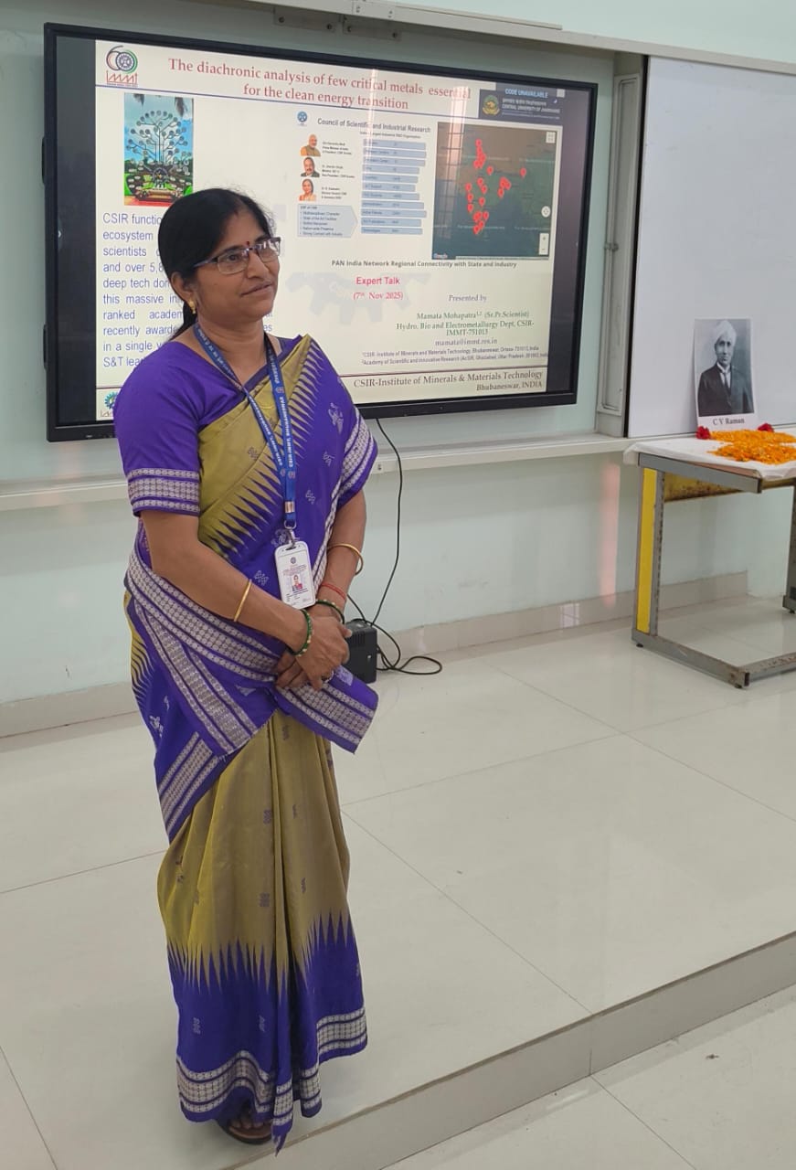 कार्यक्रम की मुख्य वक्ता सीएसआईआर – खनिज और पदार्थ प्रौद्योगिकी संस्थान, भुवनेश्वर (ओडिशा) की वरिष्ठ प्रधान वैज्ञानिक, डॉ. ममता मोहापात्रा रहीं, जिन्होंने “स्वच्छ ऊर्जा परिवर्तन के लिए आवश्यक कुछ महत्वपूर्ण धातुओं का कालक्रमिक विश्लेषण” विषय पर अपना व्याख्यान प्रस्तुत किया।