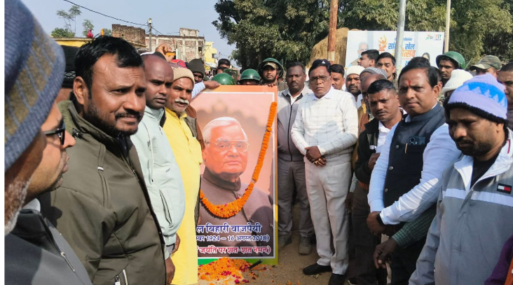 Prominent attendees included BJP Mandal President Manish Mandal, MP Representative Vinod Yadav, former Mandal President and Mukhiya Ajay Yadav, BJP leaders Bablu Mandal, Shailesh Mandal, Ashok Rana, Mukesh Mandal, Shivdhan Mandal, Chintamani Mandal, Bhek Lal Mandal, Yudhishthir Mandal, Mukesh Yadav, Pintu Yadav, Sonu Mandal, Kedar Mandal, Surendra Modi, Kuldeep Yadav, Prahlad Singh, Raghunandan Mandal, Murli Mandal, senior leaders, Mandal office-bearers, and a large gathering of party workers. All paid floral tributes and pledged to uphold Atal Ji’s legacy and ideals.