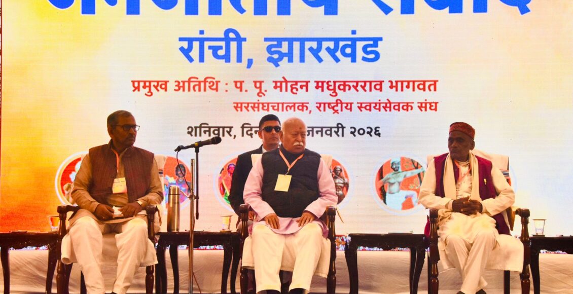 RANCHI: A comprehensive Janjati Samvad Karyakram was held this Saturday at Dibdih, Ranchi, featuring Rashtriya Swayamsevak Sangh (RSS) Sarsanghchalak Mohan Madhukar Bhagwat as the Chief Guest. The dialogue aimed to address the social, cultural, educational, and economic challenges facing the tribal community.
